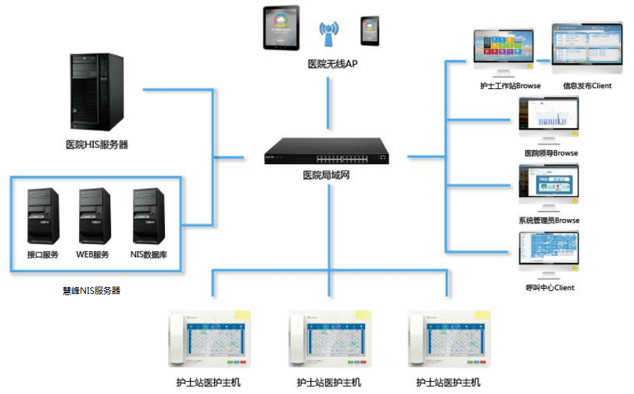 隨著現(xiàn)代化醫(yī)院的迅速發(fā)展和不斷進(jìn)步,醫(yī)院信息化建設(shè)越來越顯現(xiàn)出其重要作用和發(fā)展趨勢。醫(yī)院信息化建設(shè)有助于實(shí)現(xiàn)醫(yī)療資源整合、流程優(yōu)化,降低運(yùn)營成本,提高服務(wù)質(zhì)量、工作效率和管理水平。護(hù)理通訊系統(tǒng)作為醫(yī)院專有特色系統(tǒng)之一,慧峰在吸納了計算機(jī)與信息技術(shù)、網(wǎng)絡(luò)技術(shù)、多媒體技術(shù)后,率先研制出全新一代的“信息化醫(yī)護(hù)管理通訊系統(tǒng)”,旨在護(hù)理日常工作和管理方面提供更智能、更全面、更人性化的產(chǎn)品應(yīng)用。