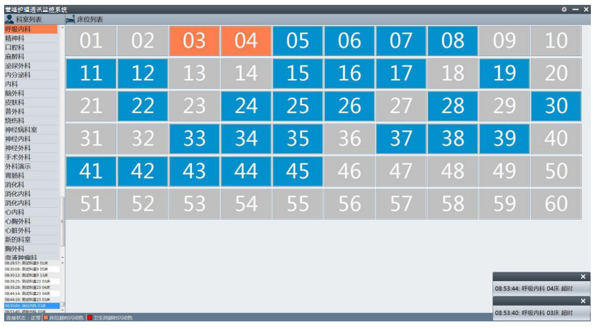 可在總值班室或呼叫中心使用,實(shí)時監(jiān)控各病區(qū)的呼叫處理情況,直觀顯示各病區(qū) 的床位及入住情況,以便及時反應(yīng)出系統(tǒng)的運(yùn)行狀態(tài),提高響應(yīng)速度,優(yōu)化服務(wù)質(zhì)量。