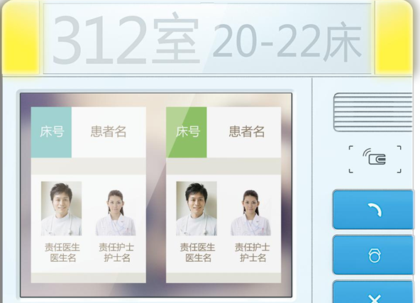 每個護(hù)理通訊終端都有醒目的護(hù)理標(biāo)識,采用 7 色(紅、藍(lán)、綠、黃、粉、青、 白)警示級別顏色,讓護(hù)理工作更加規(guī)范統(tǒng)一。
